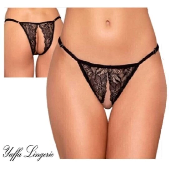 Calcinha rendada muito sexy e provocante aberta no estilo secretária, tem alças reguláveis e por isso é determinante para definir o empoderamento da mulher como ditadora de regras no jogo do amor.