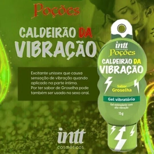O caldeirão da vibração é um excitante gel unissex que causa sensação de vibração quando aplicado na parte íntima. Seu sabor de groselha permite que ele seja usado também no sexo oral por ser um produto beijável.