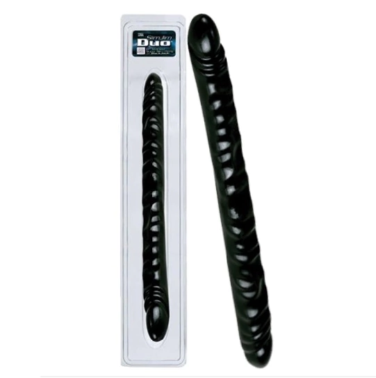Esse é um penis em látex com duas cabeças "SLIM JIM DUO" feito à mão com material PVC e dotado de detalhes minunciosos. Brinquedo erótico do tipo conhecido como Maiame, ele é unisex, porém, usado como preferência feminino para compartilhamento de prazer e cunplicidade. Ele tem veias ao longo de sua extensão que ajudam na fricção e proporcionam mais facilmente o orgasmo.