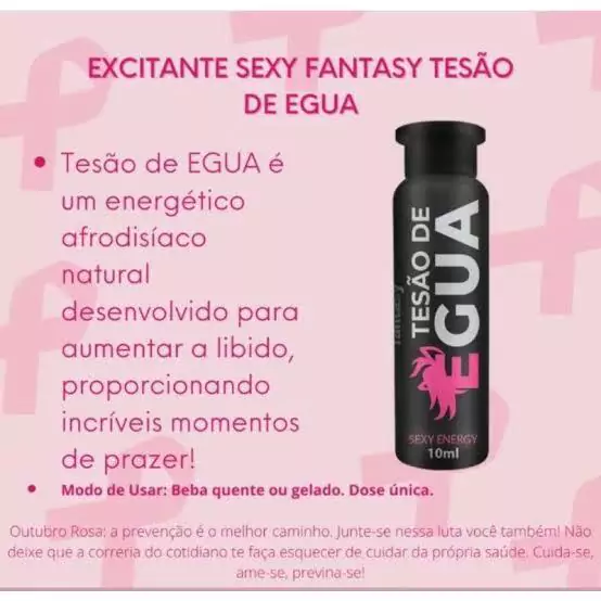 Tesão de Égua é um estimulante energético afrodisíaco, que aumenta à líbido da mulher pelo desejo sexual. Equivale ao mesmo objetivo final do prazer constante no Tesão de Vaca, porèm com componentes diferentes na sua formula, em razão dos efeitos entre as pessoas serem diferenciadas. Ele desperta horizontes para a entrega expontânea da mulher, pela busca de prazer no ato sexual.